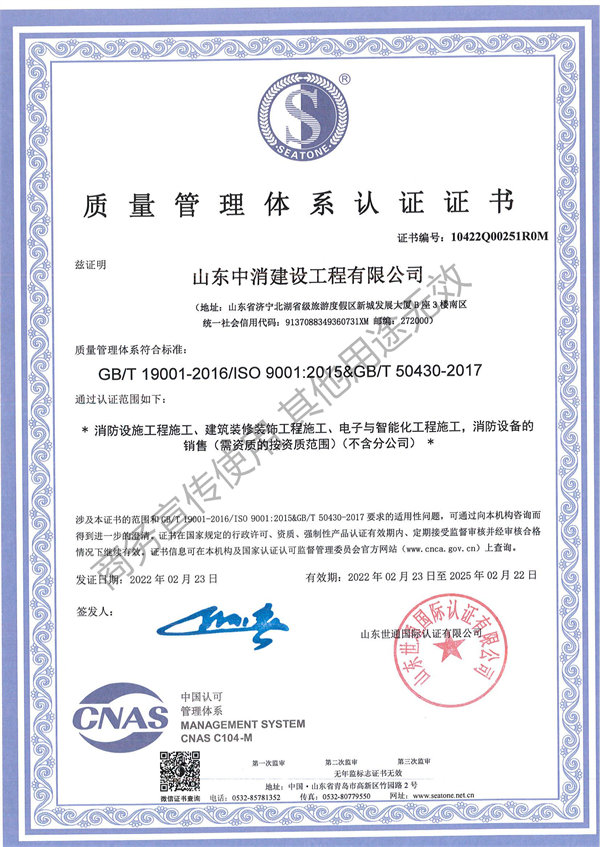公司重視人才培養(yǎng),秉承以人為本、和諧共享的發(fā)展方針。匯集了一批高水平高素質(zhì)的工程專業(yè)管理人才,組建了一支實(shí)踐經(jīng)驗(yàn)豐富的工程技術(shù)專業(yè)隊(duì)伍,現(xiàn)有一級(jí)消防工程師10余人、二級(jí)注冊(cè)建造師20余人,高級(jí)工程師、工程師及助理工程師等30余人,經(jīng)國(guó)家相關(guān)部門培訓(xùn)合格的重點(diǎn)崗位專業(yè)技術(shù)人員50余人。目前已在濟(jì)南、青島、日照、濰坊、東營(yíng)、德州、臨沂、淄博、菏澤、棗莊、滄州、新疆等地設(shè)二十余家分公司。