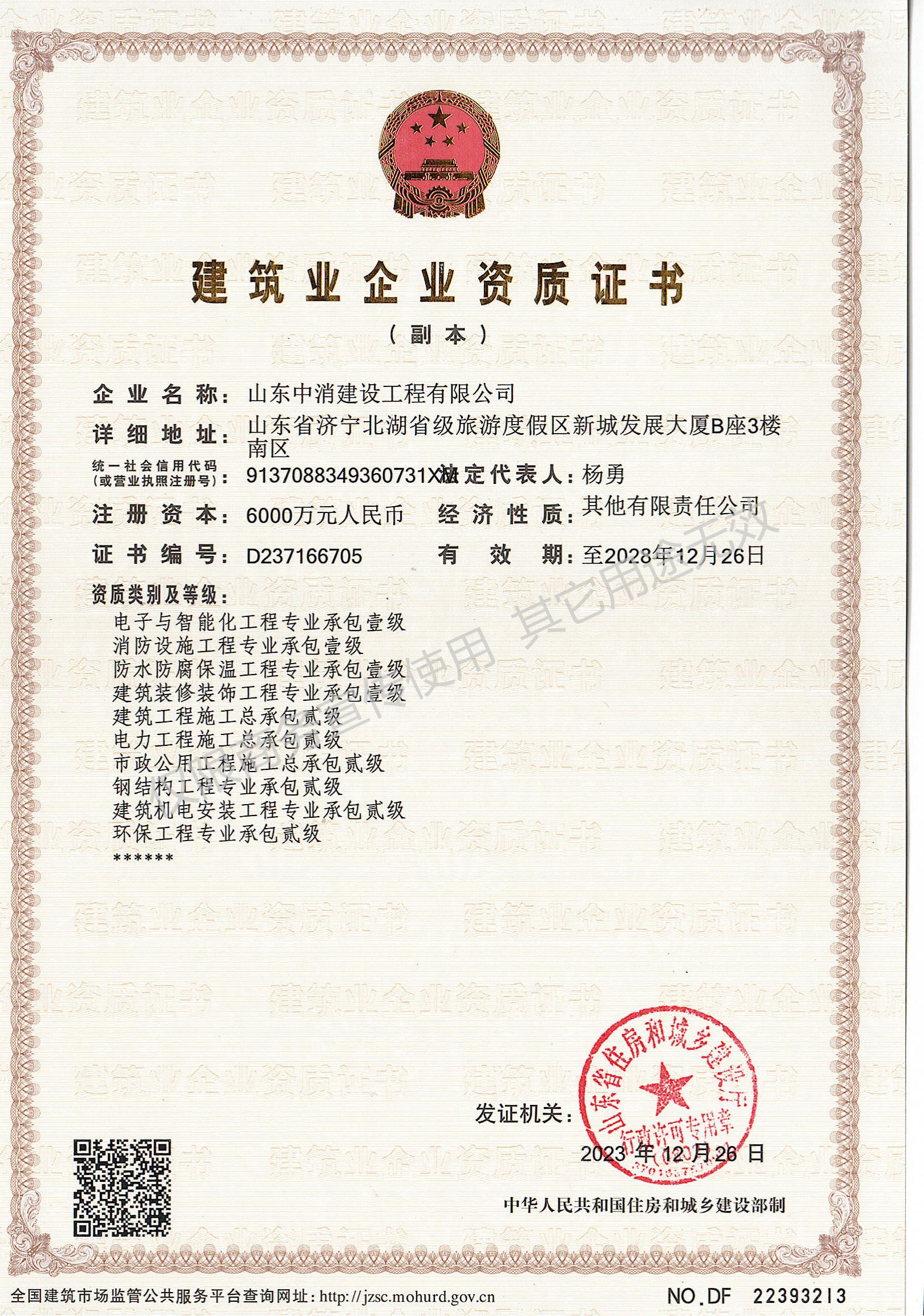 公司成立于2014年,注冊(cè)資金6000萬元,具有獨(dú)立法人資格,集施工、銷售于一體,作為消防技術(shù)協(xié)會(huì)會(huì)長(zhǎng)級(jí)單位,立足行業(yè)多年擁有深厚的行業(yè)背景和影響力!主營(yíng)消防設(shè)備銷售,消防工程設(shè)計(jì)、施工,消防檢測(cè)、維保、評(píng)估,施工勞務(wù),建筑、電力、市政、機(jī)電、鋼結(jié)構(gòu)、環(huán)保施工,電子與智能化施工,防水、防腐、保溫施工,建筑裝修、裝飾工程設(shè)計(jì)、施工等業(yè)務(wù)。